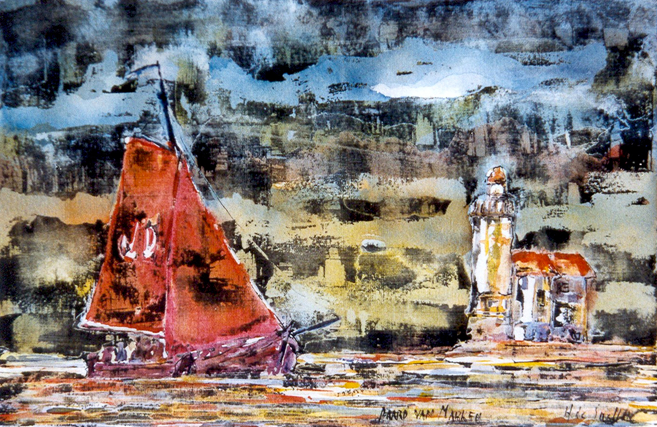 Aquarel Oost-indische Inkt Paard Van Marken Volendammer Botter Garnkwak Vd Pentekening Volendam Markermeer Henk Snelle