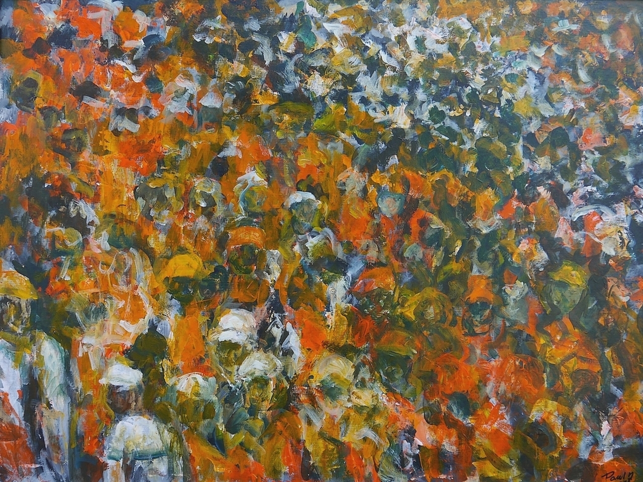 Sport voetbaltribune. Het schilderij is een hommage aan het oranjelegioen