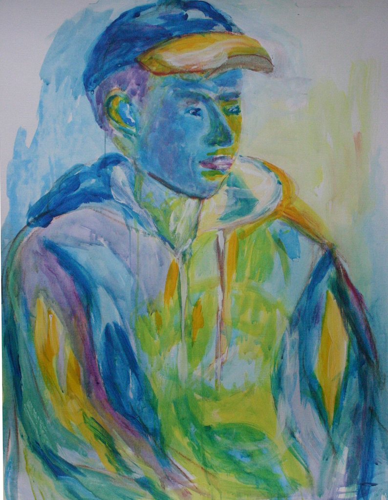 Schilderen met acrylverf heeft mijn voorkeur: ik werk veel met kwast, paletmes. Ik maak portretten, dieren en landschappen.