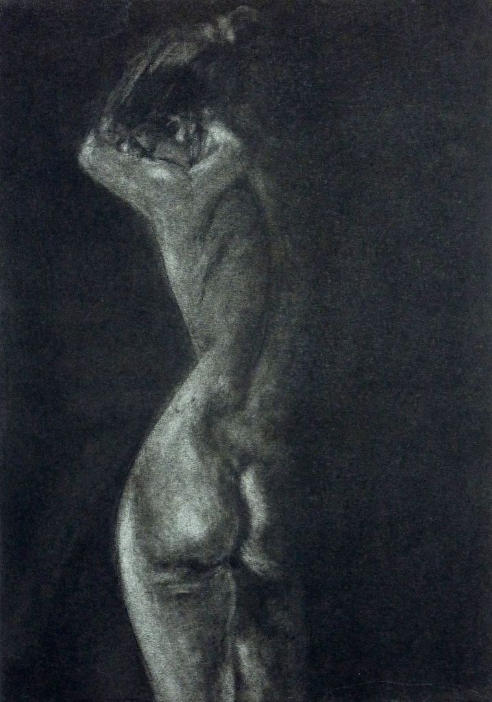 Vrouw Naakt Realistisch Houtskool (fusain)