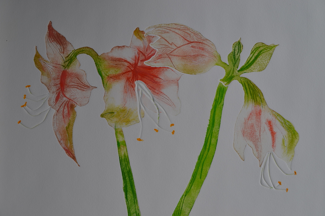 Amaryllus VII - droge naald en aquatint - uitgezaagde zinkplaatjes - meerkleuren druk - blinddruk - oplage 1