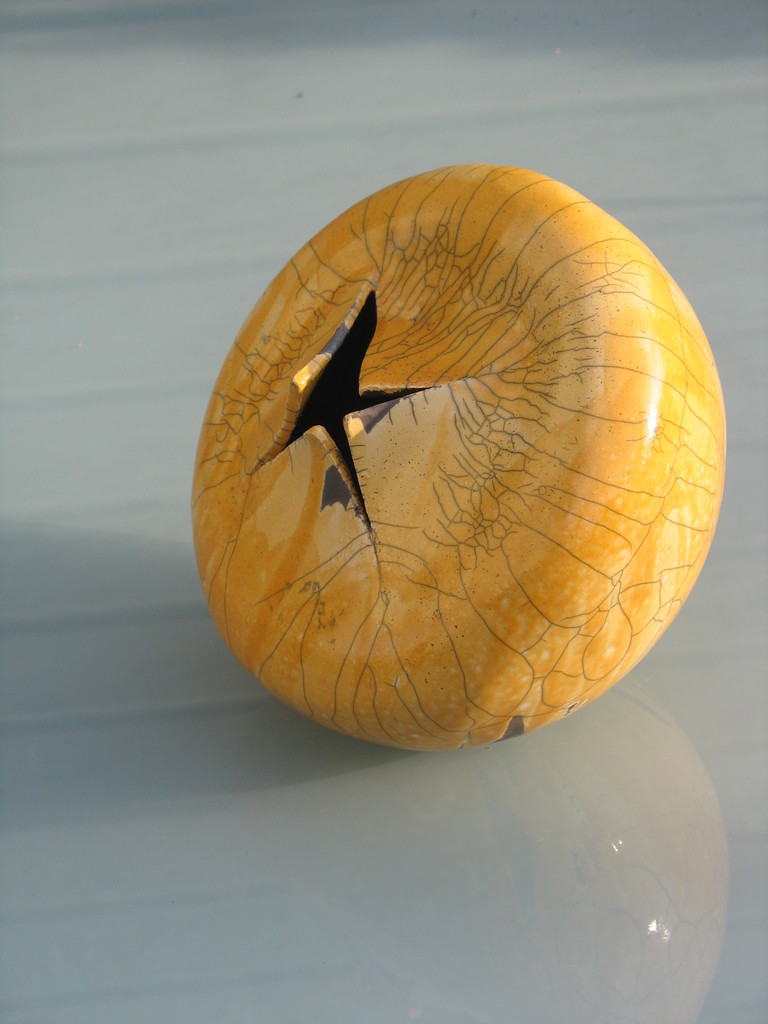 gele bol die als het ware van binnen uit opengebarsten lijkt
