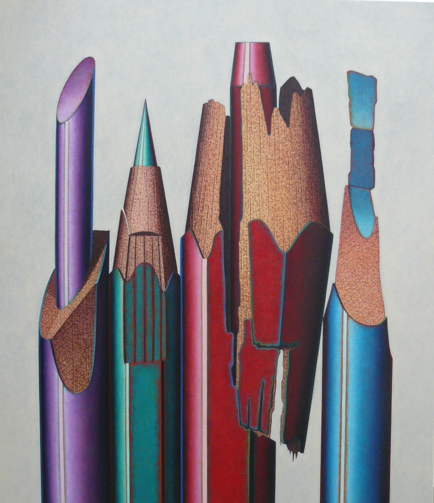 Een olieverfschilderij uit de serie ' Beschadigde kleurpotloden '