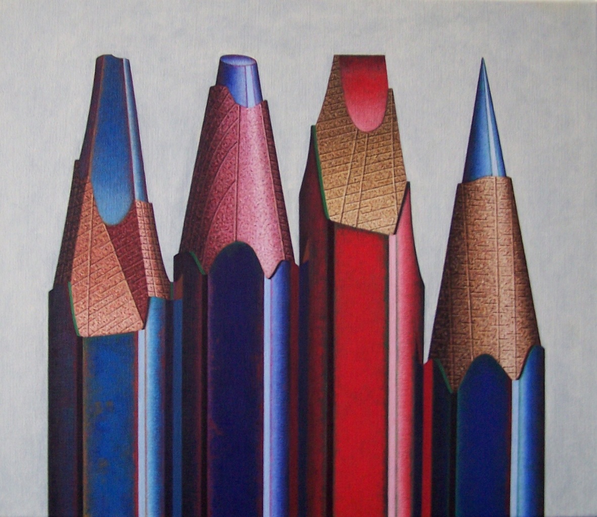 Een olieverfschilderij uit de serie ' Kleurpotloden '