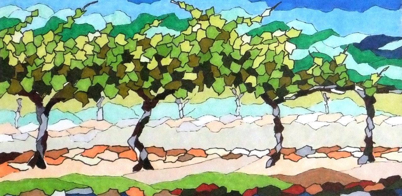 Maakt voornamelijk landschapselementen met voornamelijk bomen als thema en inkt en kleurpapier