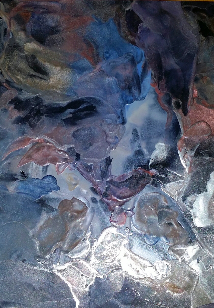 nachtelijke flow op zwart encaustic papier, spelen met kleuren