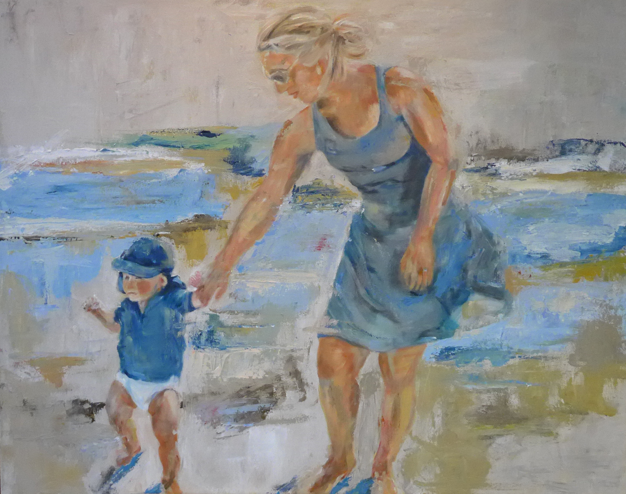 Strand Blauw Kind Moeder