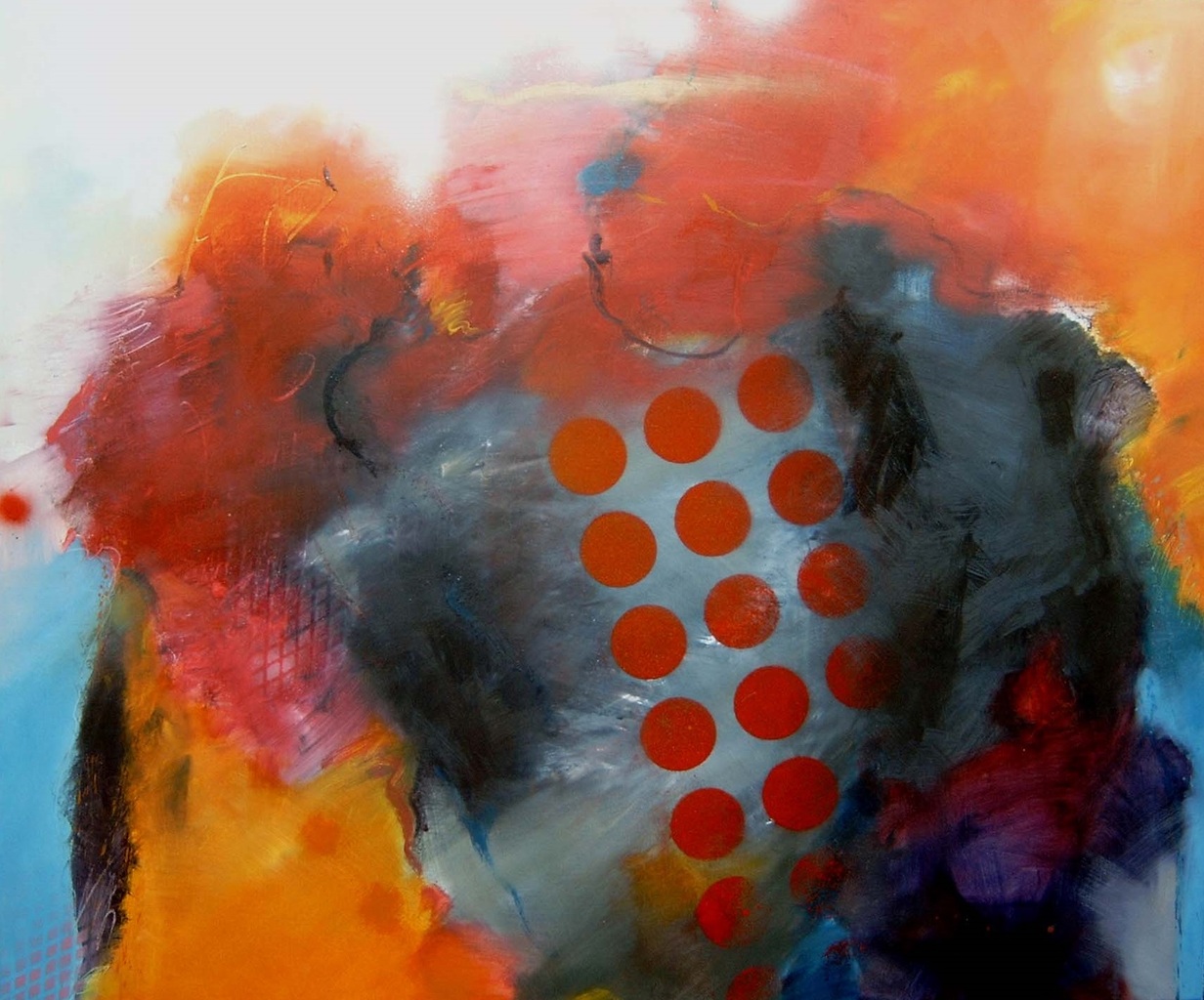 Abstract, expressief met iets figuratiefs. In ieder geval kleurrijk, spetterend en het knalt van het doek af. www.noortielens.nl