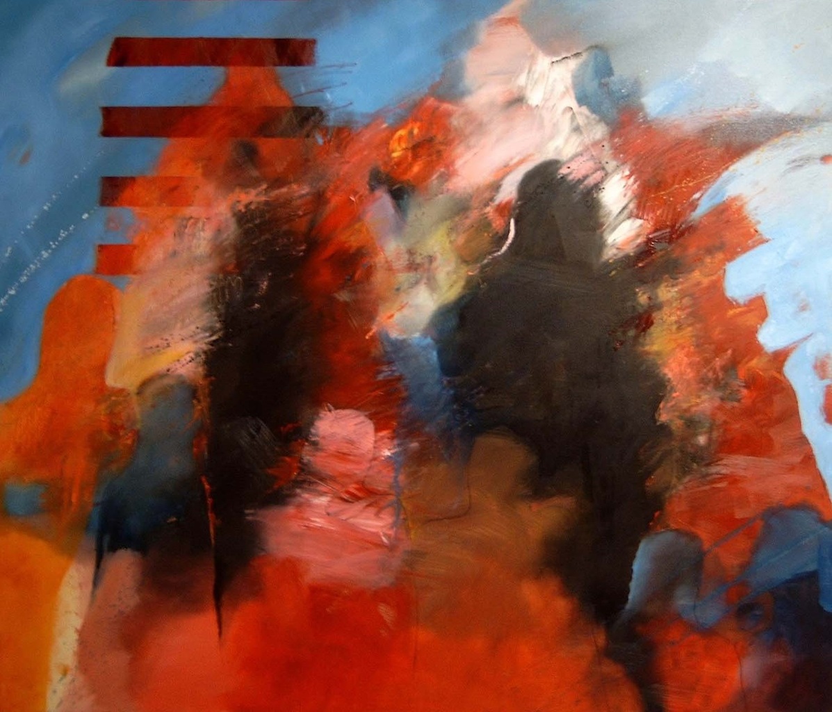 Abstract, expressief met iets figuratiefs. In ieder geval kleurrijk, spetterend en het knalt van het doek af. www.noortielens.nl