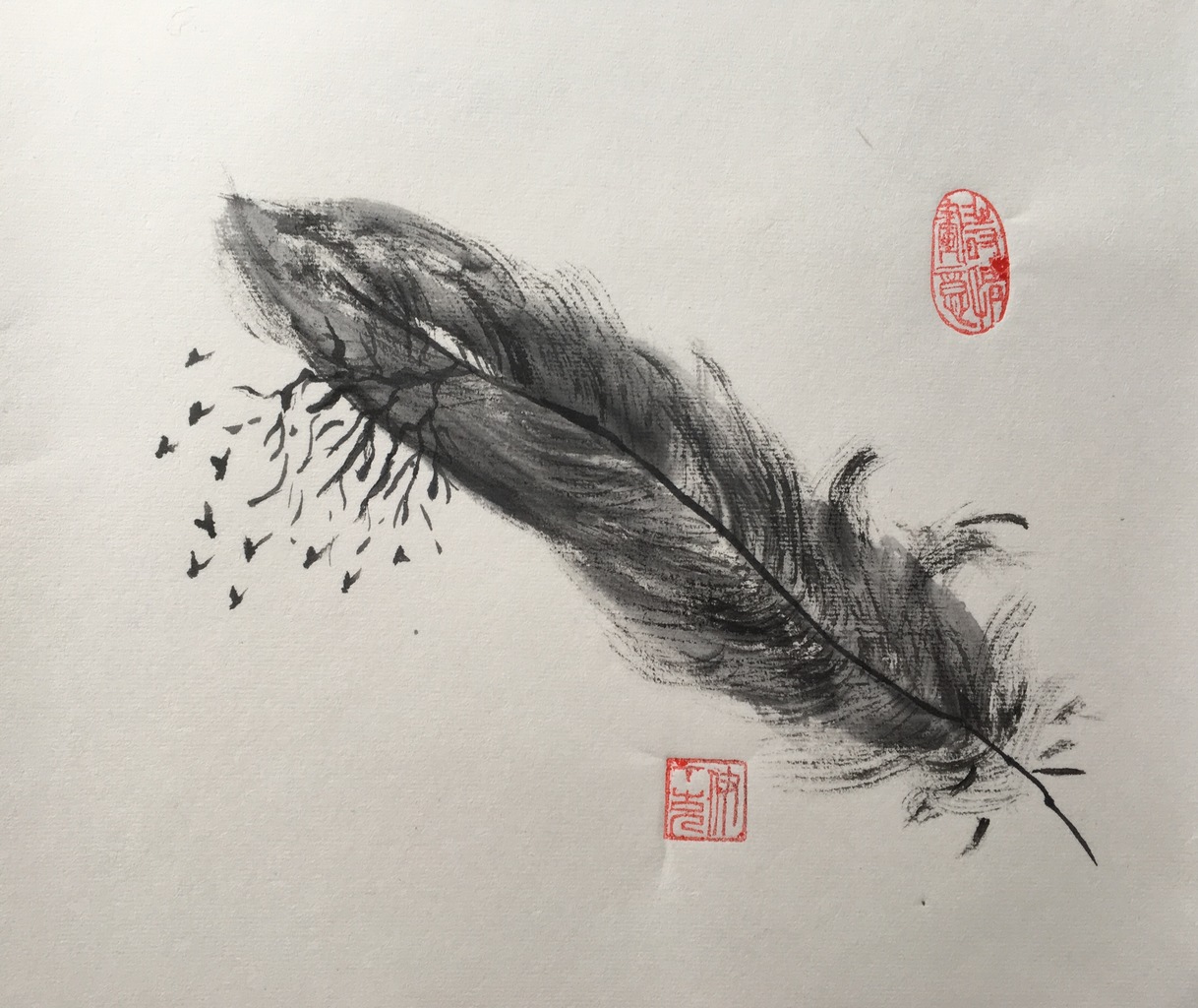 Fantasie, veer met vogels