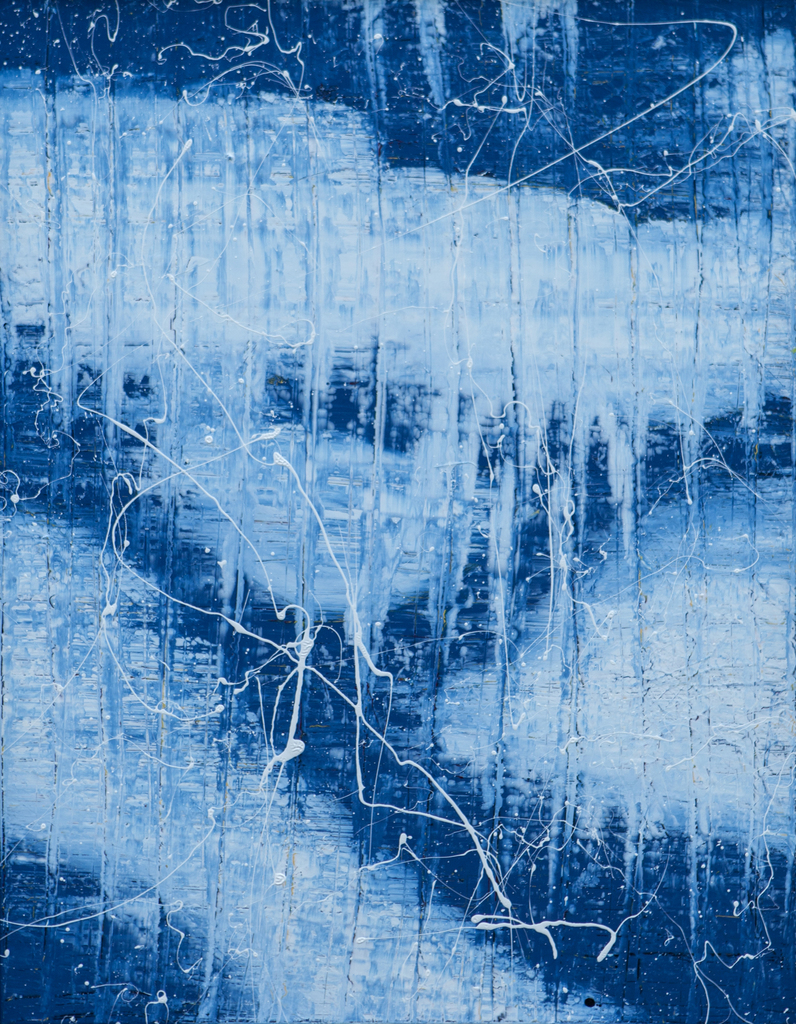 Een prachtig werk in wit en blauw. Gecombineerde technieken.