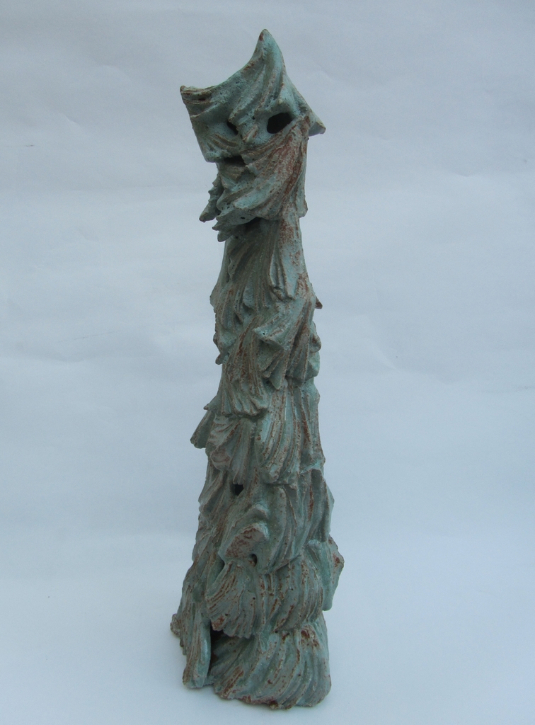Zoektocht in keramiek: vrouwzijn in vloeiende lijnen en contouren; hoge dunne vaasvormen als weerspiegeling van een zoektocht naar identiteit...