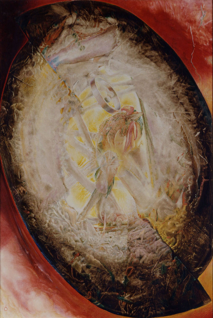 Dit schilderij behoort tot een serie van drie met als onderwerp "Alchemie". Het samenvallen of verenigen van tegenstellingen schept ruimte voor een verhelderd bewustzijn.