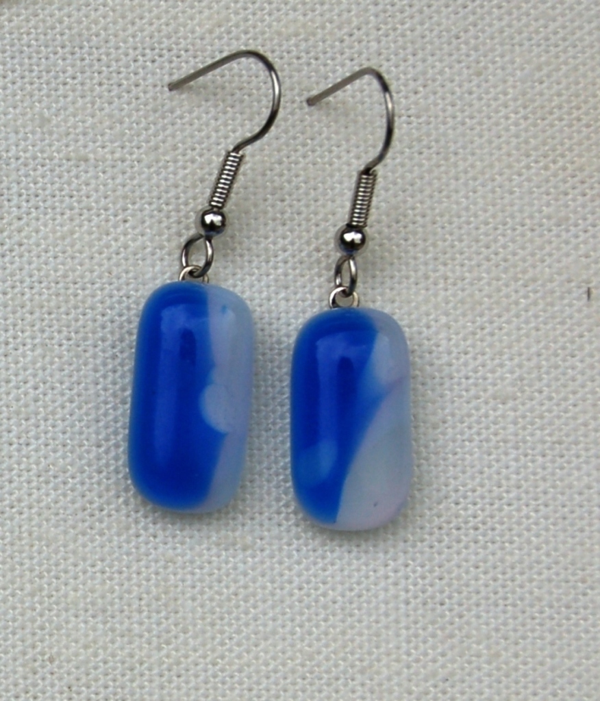Wit Blauw Glas Glaskunst Glasfusing Kleur Sieraad Oorbellen