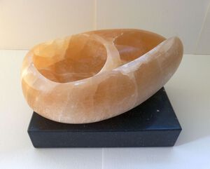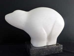 Deze kat is gemaakt van albast dat o.a. in Egypte wordt gedolven. Egyptenaren verhieven de kat tot een heilig dier. Aardige overeenkomst. Behalve in Egypte wordt albast eveneens gevonden in Engeland, Italië en Spanje.