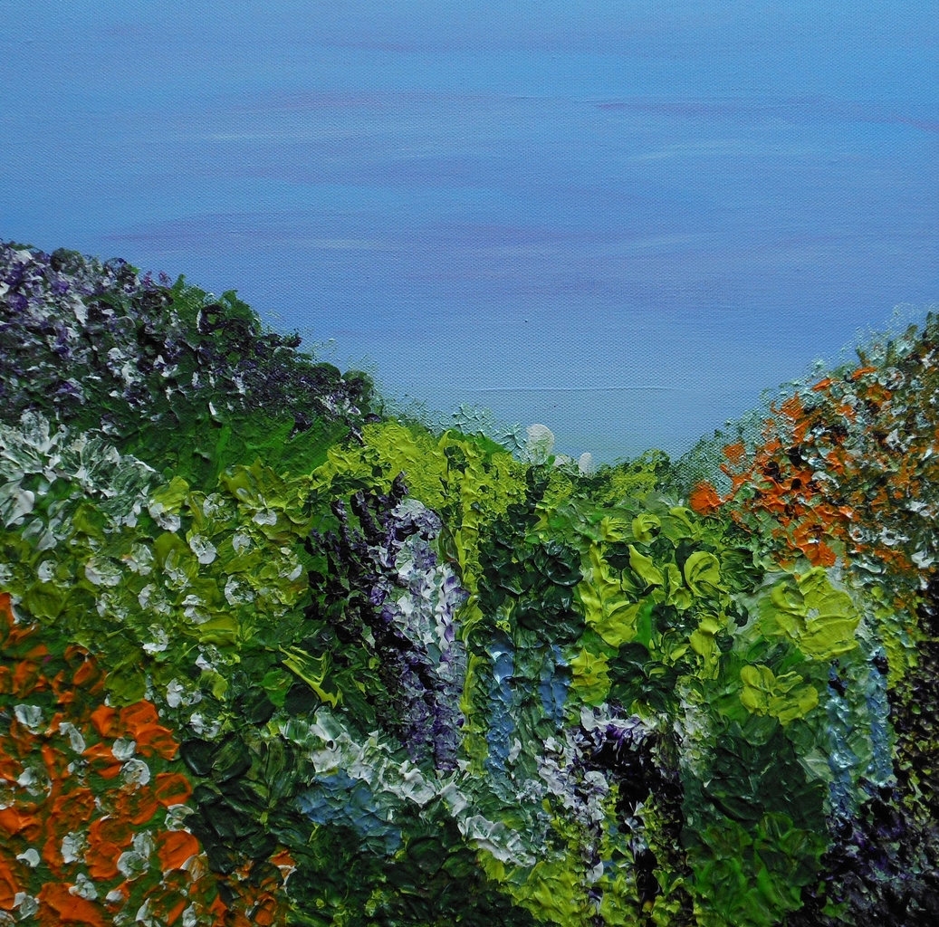 Oranje Blauw Acryl Groen Blue Canvas Tuin Doek Green Roze Flowers Lyrisch Impressionisme Pink Garden Vingerverf Field Bloemenveld Fingerpainted Nobrushes