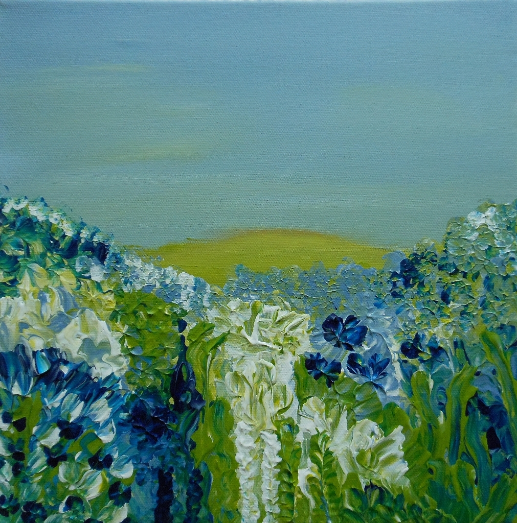 Wit Blauw Acryl Groen Bloemen Blue Canvas Doek Green White Flowers Structuur Impressionisme Veldbloemen Texture Flowerfield Fingerpainting