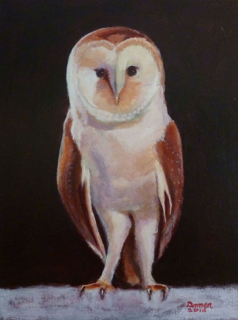 Uil Leuk Aandoenlijk Realistisch Realistische Doek Acryl Donkere Achtergrond En Face