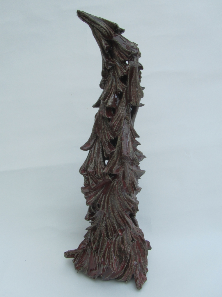 Zoektocht in keramiek: vrouwzijn in vloeiende lijnen en contouren; hoge dunne vaasvormen als weerspiegeling van een zoektocht naar identiteit...