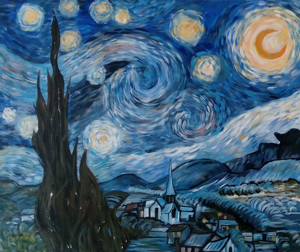 Schilderij Blauw Van Stadsgezicht Kopie Sterren Gogh Replica