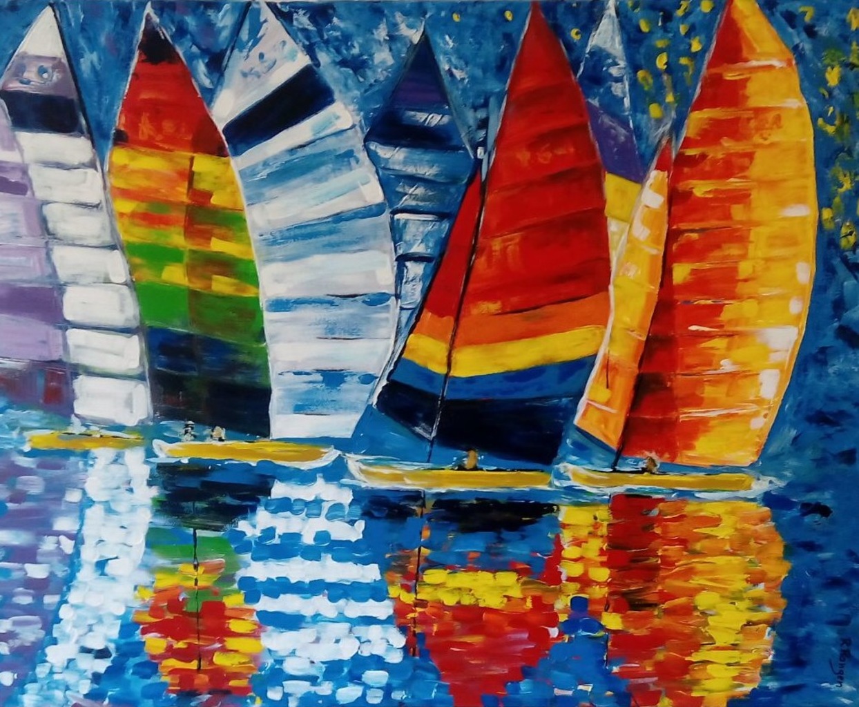 Zee Abstract Rood Geel Kleurrijk Kleur Zeilboot Zeilboten