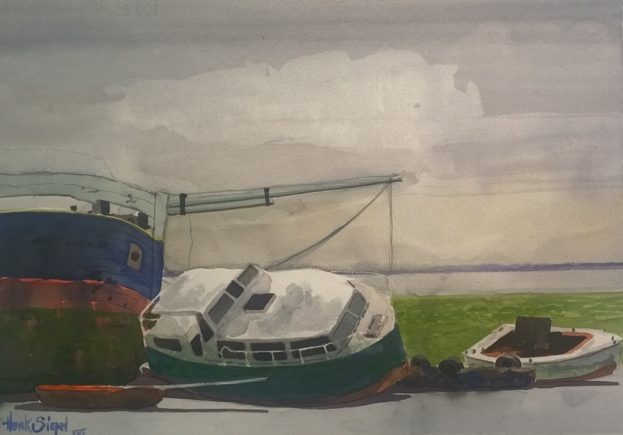 Henk Siepel Henk woont in Lelystad. Daar in Flevoland leerde hij zijn inspiratiebronnen kennen. De hoge luchten, de weidsheid, de veranderende kustlijn. De oude-havenstadjes, de landschappen van de het omringende oude land. Henk is voornamelijk met grafiek bezig. Met het etsen. Hier heeft hij een rijk oeuvre in gemaakt, met hoofdzakelijk maritieme onderwerpen. De laatste tijd aquarelleert hij meer. Zijn werk is te omschrijven als realistisch, Hollands impressionistisch.