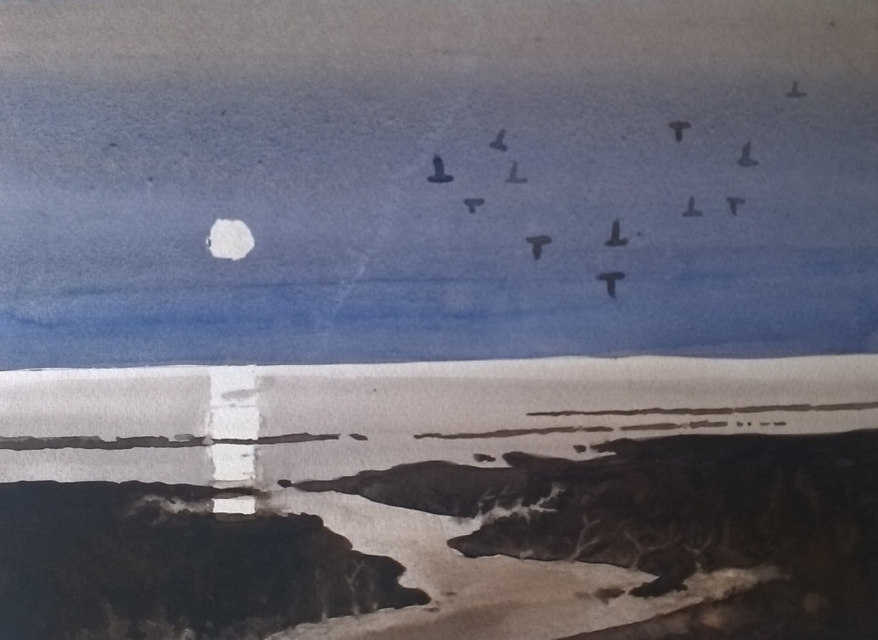 Wad Strand Avond Aquarel Henk Siepel