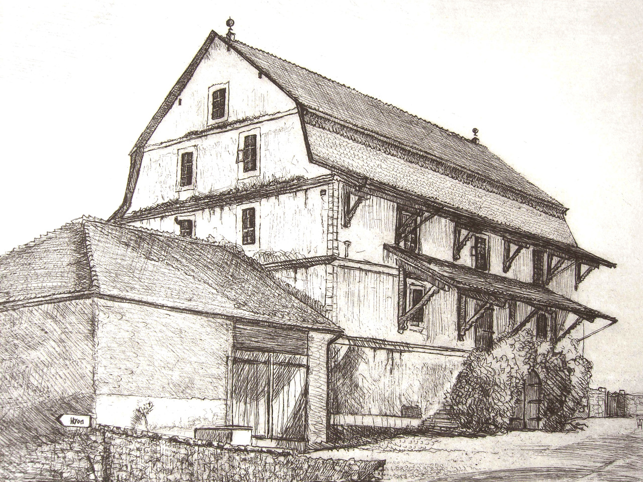 Aan 't meer van Genève een 'Dîme' huis, waar Bern in het verleden belasting inde. (det. ets)