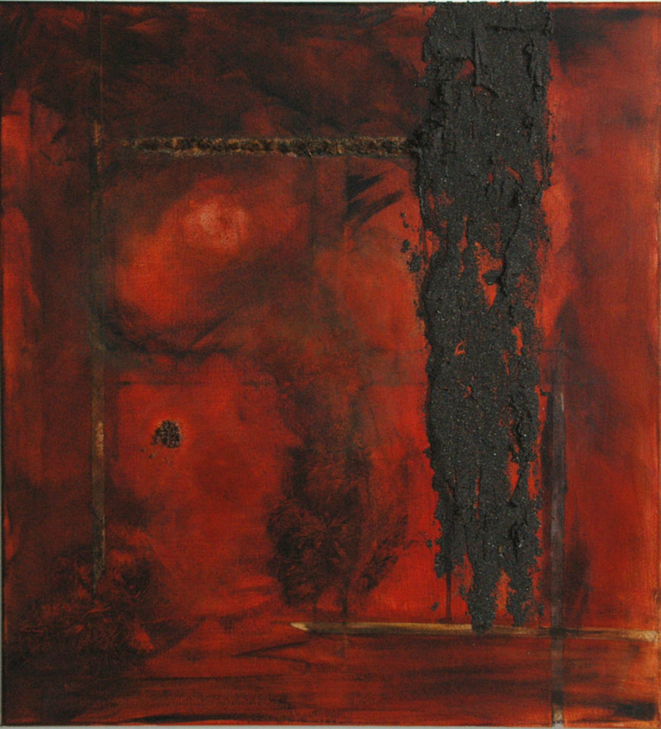 Vulkanisch zand meegebracht van het eiland La Gomera in acrylmedium