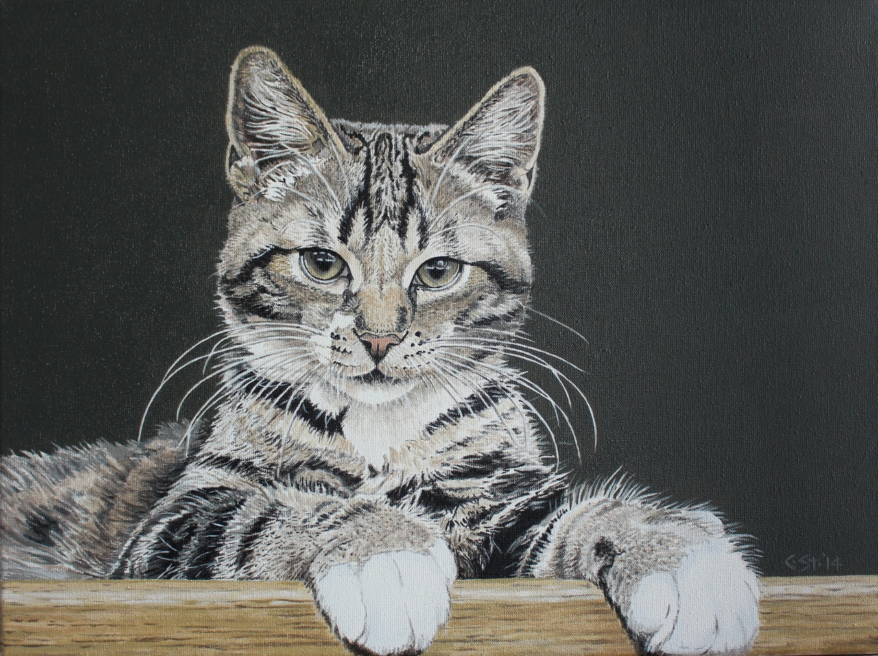 Jonge Poes Cypers Gestreept Olieverf Realistisch