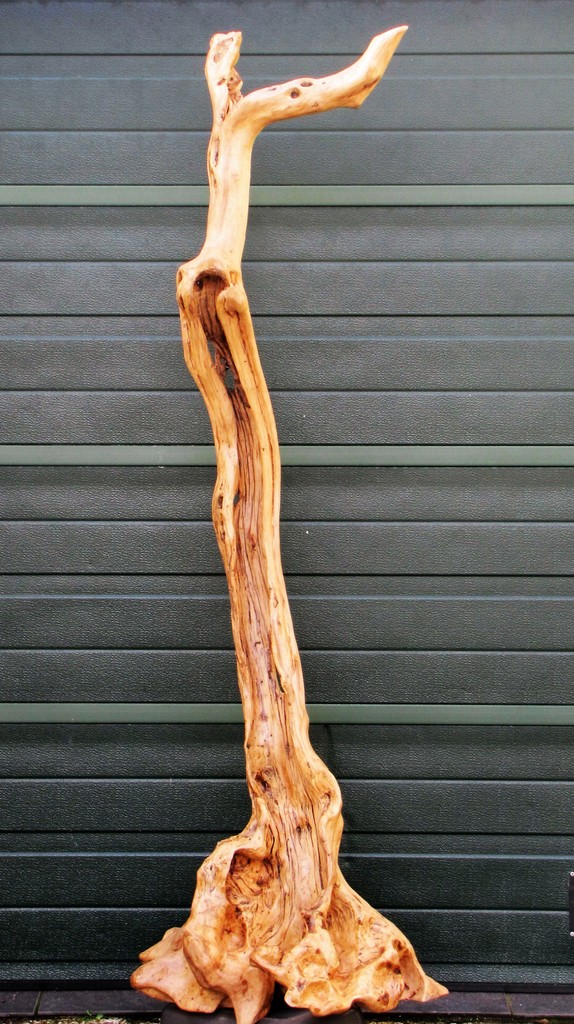 een olijfboomtje die jaren buiten heeft gelegen. Het dode hout verwijderd en uitgehakt. Een prachtige stuctuur blijft over.