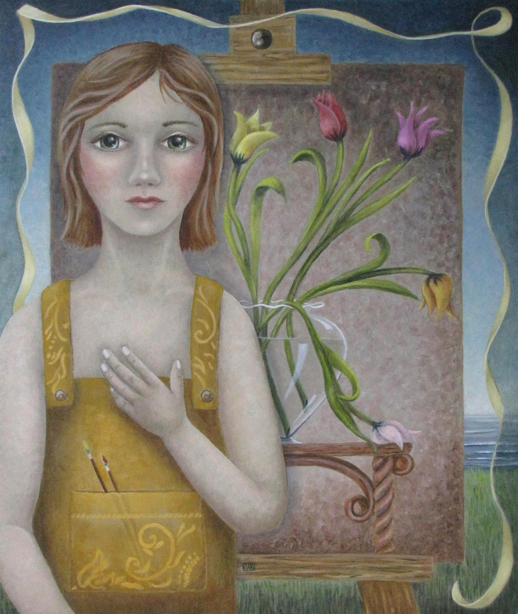 Naïef realistisch werk met een poëtische inslag verbeeld in meerdere disciplines: olieverfschilderijen, keramiek en poëzie.