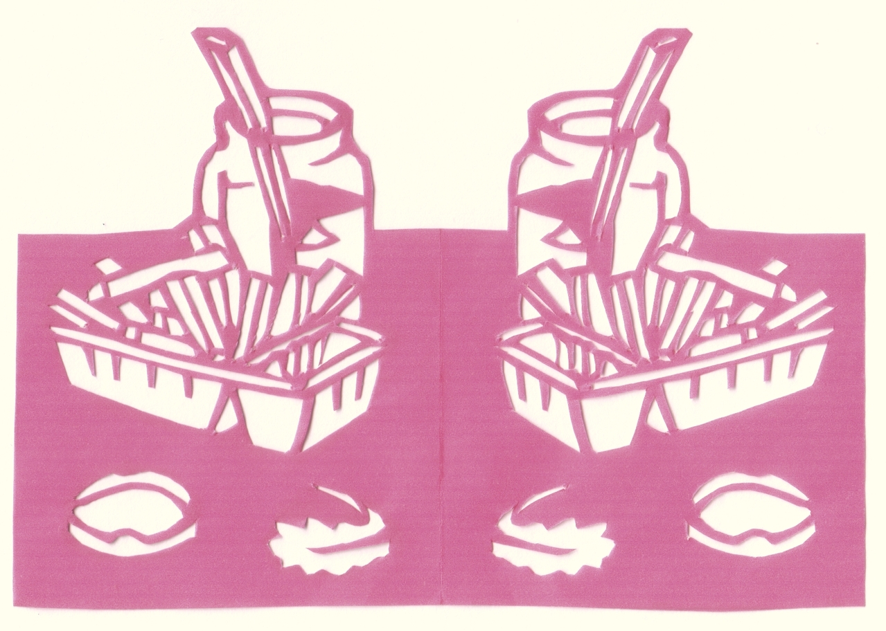 Pot Papier Roze Paper Cut Patat Mayonaise Knipkunst Knipwerk Friet Scherenschnitt