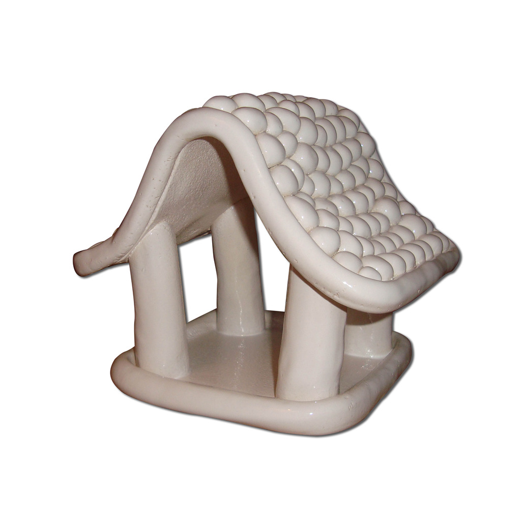 Werkwijze: Handmatig gerolde bolletjes en handmatig samengesteld. Materiaal: Witbakkende fijne chamotte klei. Deklaag: Wit glanzend glazuur.