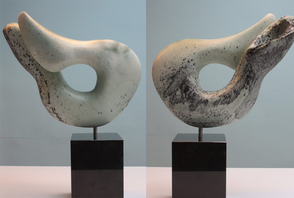 Sculpuur in Indisch speksteen op granieten sokkel. Kan zomers in de tuin staan! Prijs inclusief btw en commissie bij galerie aankoop. Aankoop buiten exposities bij de kunstenaar mogelijk. Sculptuur Kievitsduin in Indisch speksteen op granieten sokkel. Prijs excl btw en eventuele commissie bij galerie.