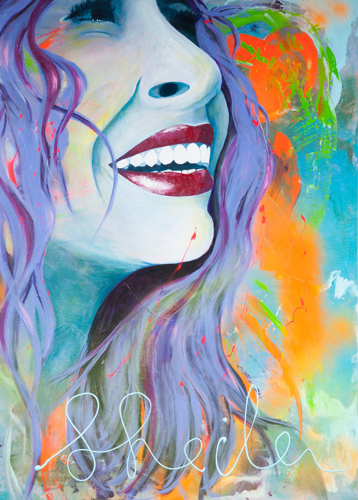 Sheila Haasnoot. Autodidact kunstenaar, geboren in Geldrop 1970, woont en werkt al vele jaren in Helmond. Zij schildert emoties en expressies, maakt een kunst van de lach en de alles zeggende blik. Kleuren spatten van het doek! In november 2017 opende zij haar eigen Kunstgalerie, SHE Art Gallery met eigentijdse toegankelijke kunst in Nuenen. Kunst die je pakt!