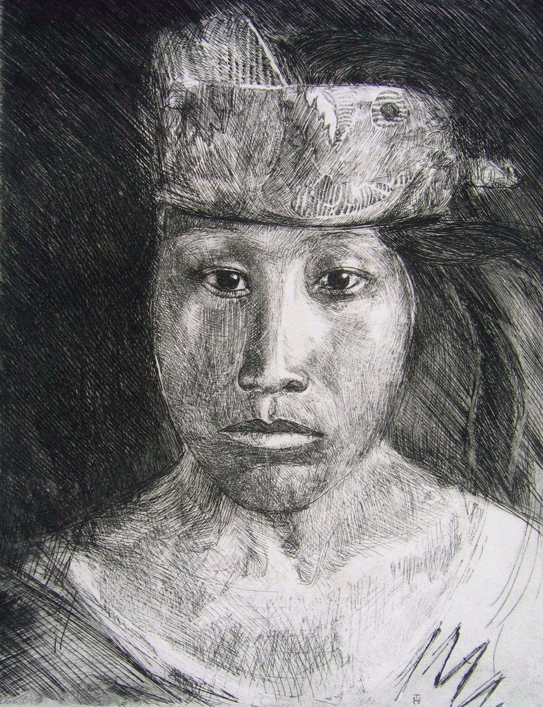 Portret Ets Indiaan Indian Etching 1977 Young-man Jonge-man
