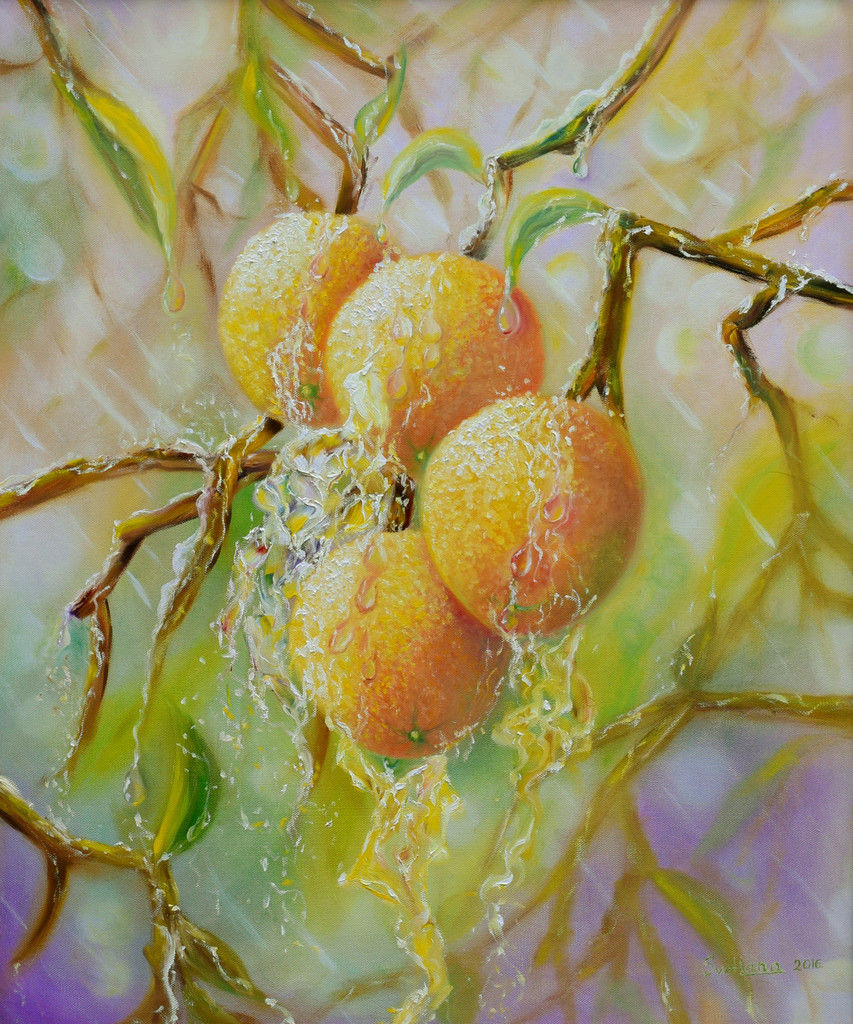 Schilderij Fruit Canvas Olieverf Natuur Stilleven Regen Sinaasappelen