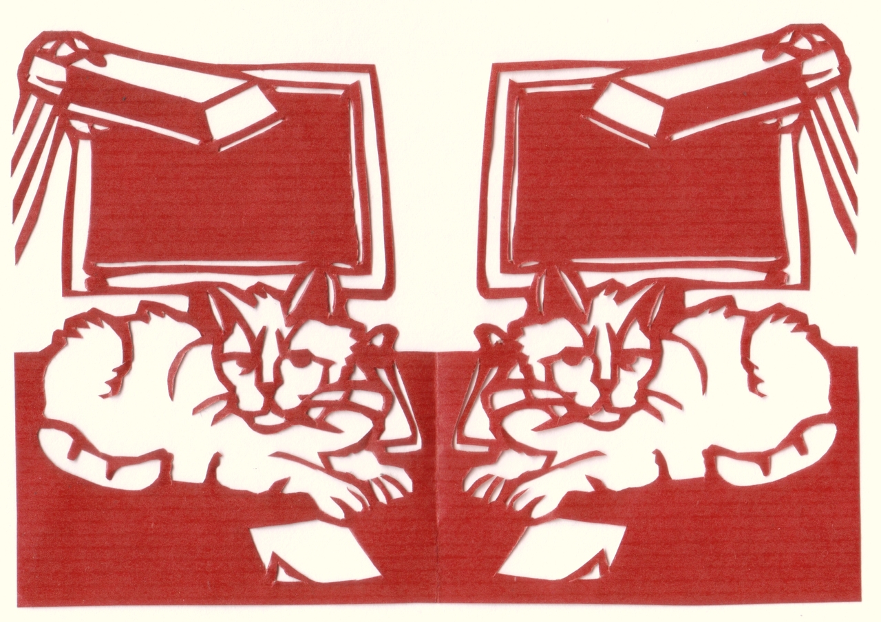 Naakt Poes Computer Toetsenbord Knipwerk Knipkunst Rood Papier Paper Cut Scherenschnitt