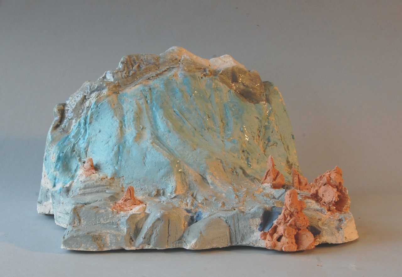 impressie van berglandschap klei, glazuur