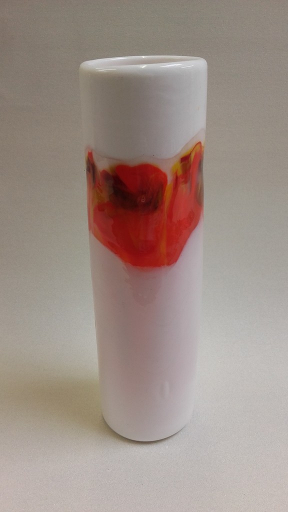 geblazen cylinder vaas met gekleurde golf