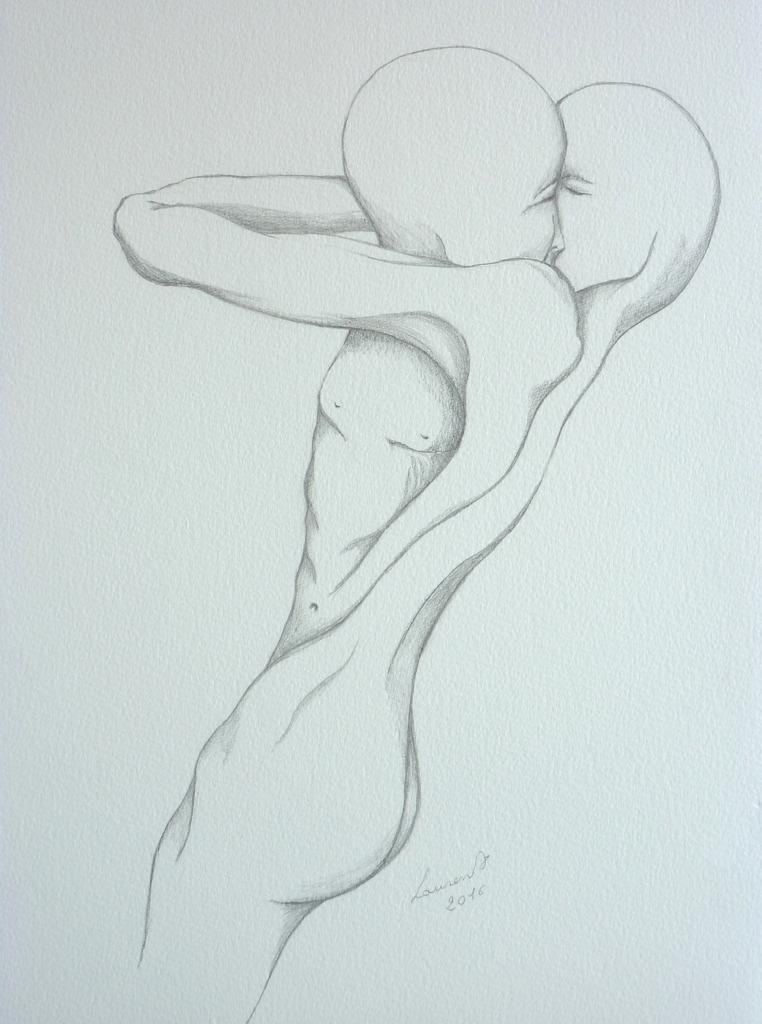 Emotie Vrouw Man Naakt Art Woman Aquarel Tekening Drawing Decoratief Origineel Kunstwerk Emotion Naked Original Decorative
