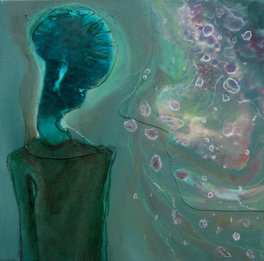 In de schilderijen van Heleen Makkinga is haar fascinatie te zien voor de wereld van de microscoop en de telescoop.Deze geheimzinnige en verborgen wereld zoekt zij op in haar werk.