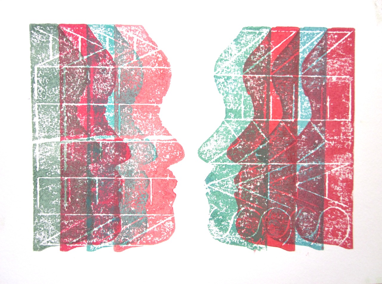 Samen alleen: serie van 2. Houtsnede op papier
