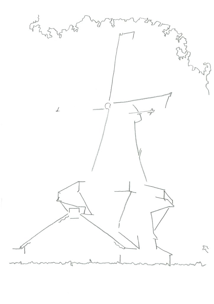 Molen Mill Windmill D'heesterboom Leiden Holland Dutch Tekening Drawing Minimalistic Black White Zwart Wit Abstract
