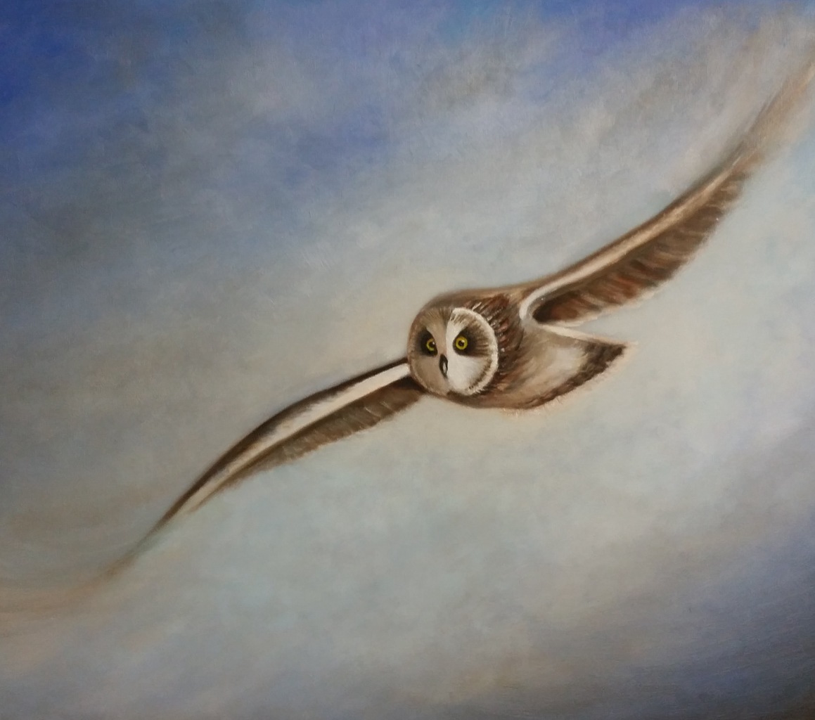 Olieverf Oilpaint Vliegend Flying Owl Velduil Short-eared