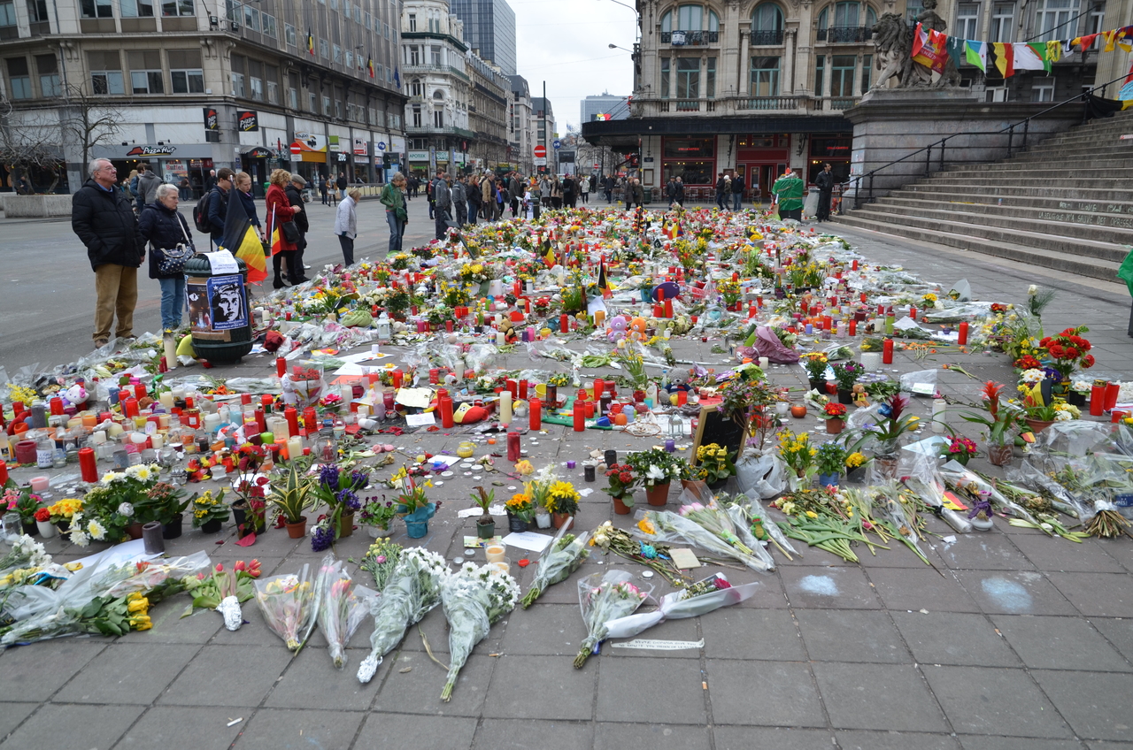 22 maart 2016 - Place de la Bourse, transformed into a place of remembrance
