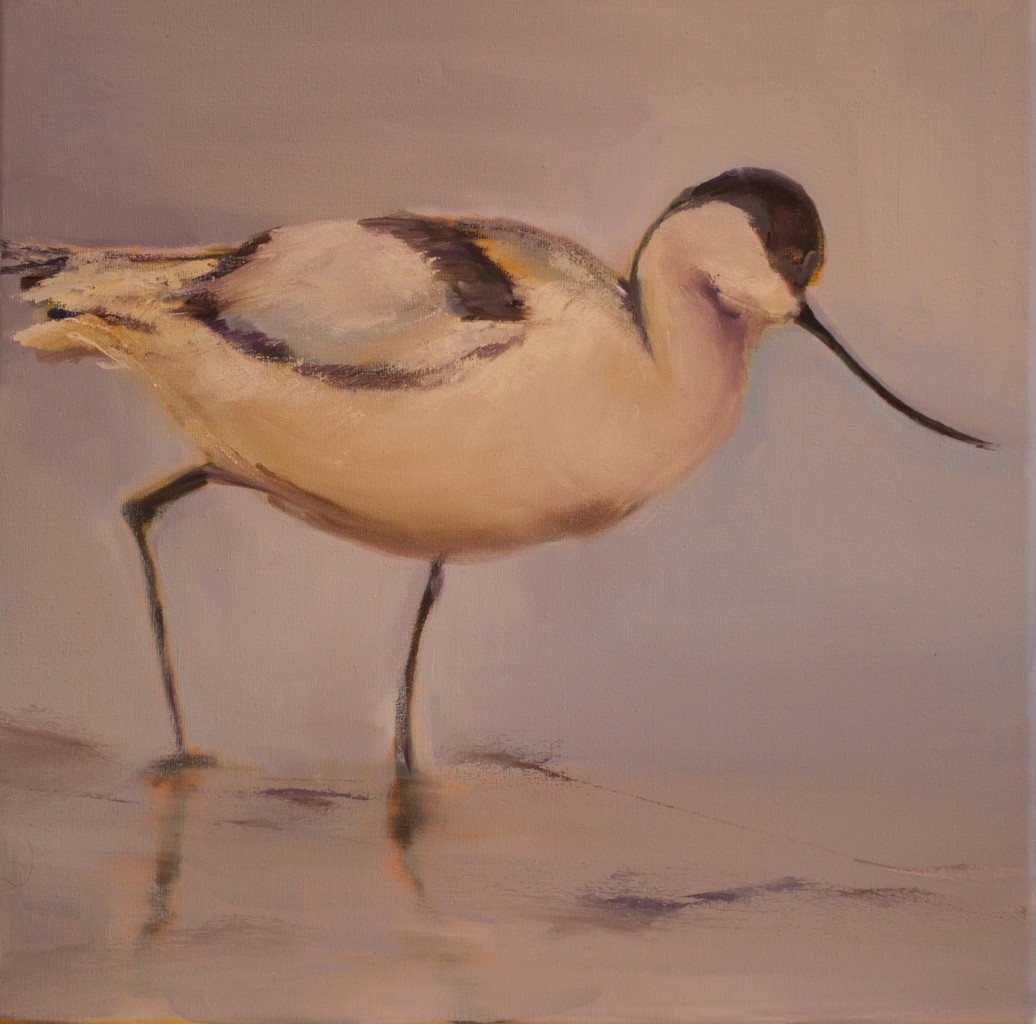 Wat een schitterende gezicht is deze fouragerende kluut (ingelijst) Verkocht