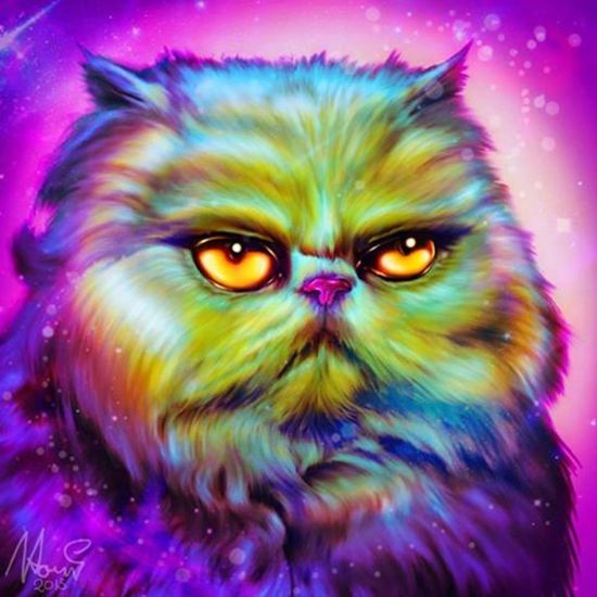 Paars Kleurig Portret Mixed Media Kleurrijk Ogen Dier Kat Kunst Mooi Roze Surreëel Neus Poes Kleur Huisdier Katten Illustratie Lief Mixedmedia Popart Pers Harig Langharig