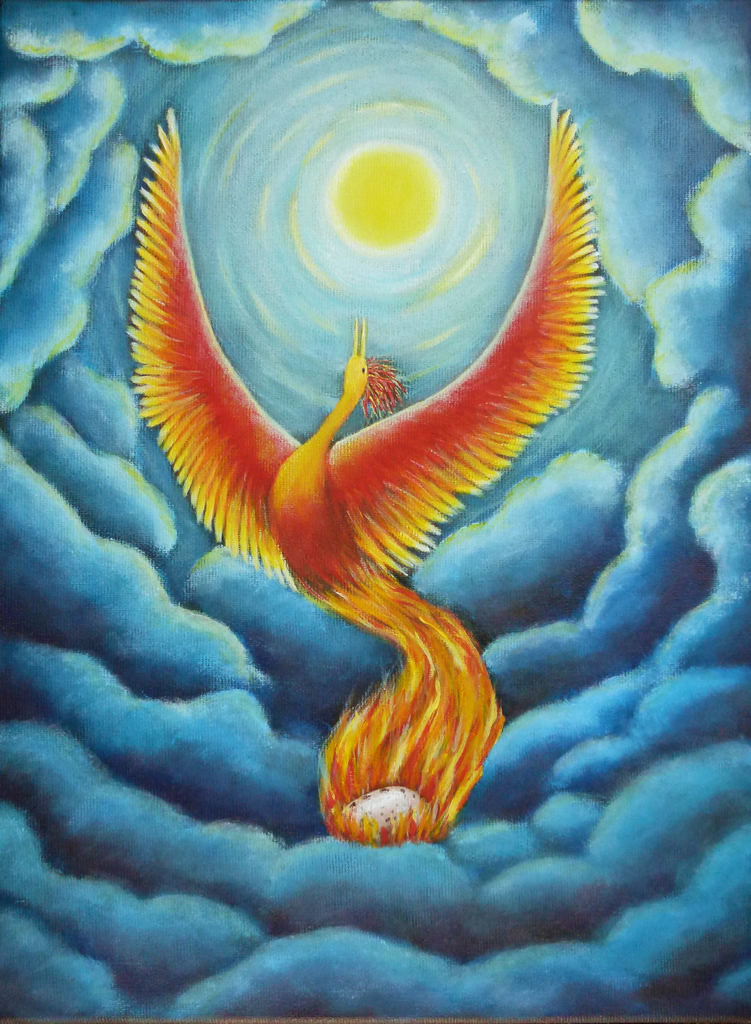 Acryl Vogel Dieren Phoenix Wolken Lucht Natuur Vliegen Zon Dromen Geboorte Vlammen Vuur